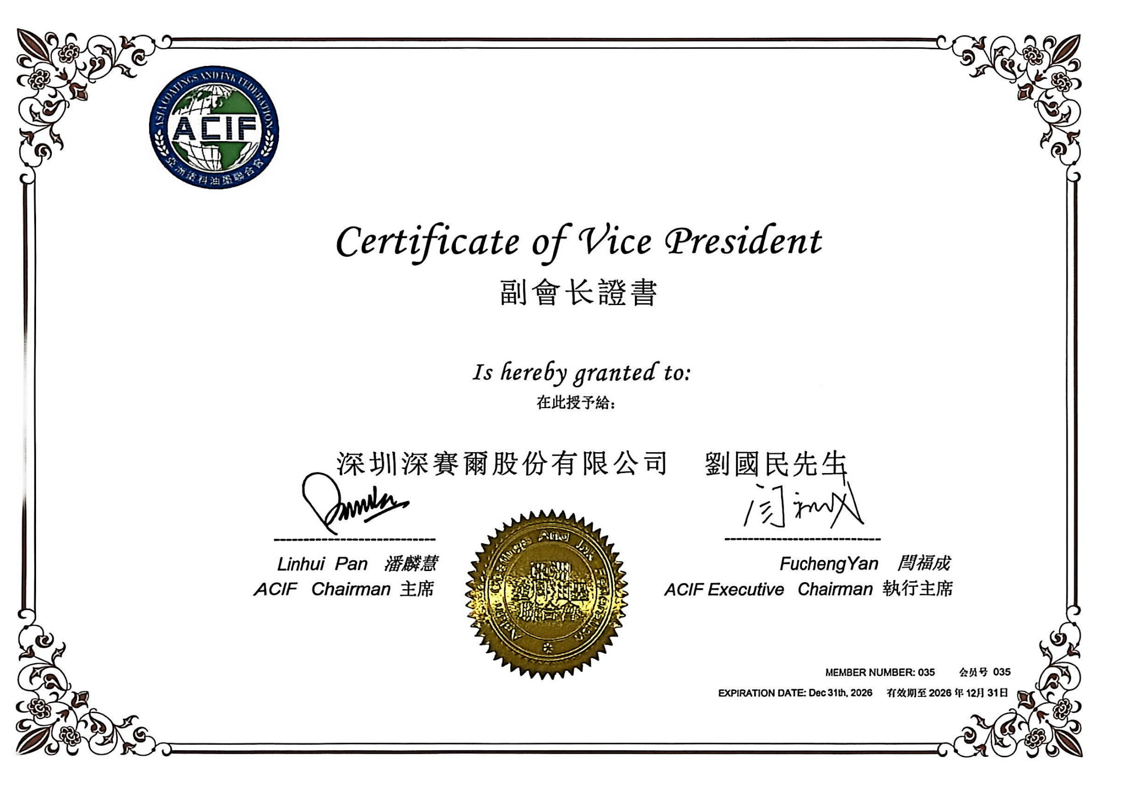 亞洲涂料油墨聯(lián)合會副會長單位